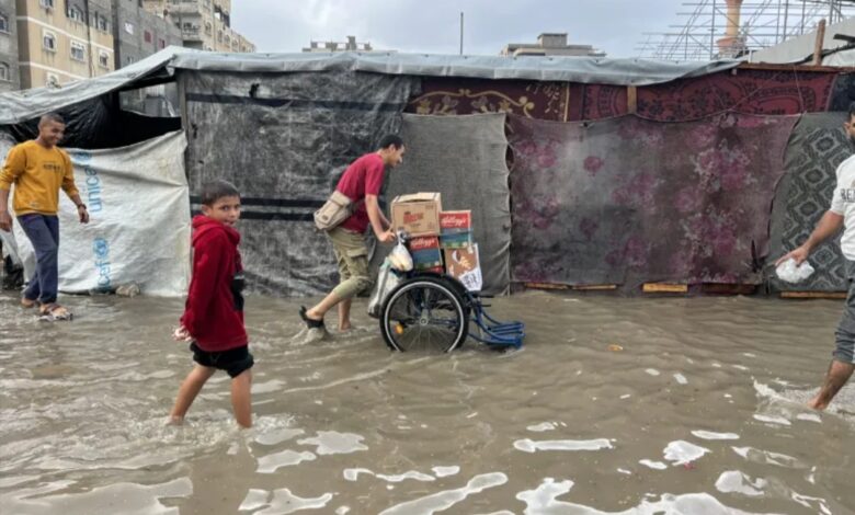 و أضاف،هذه الأوضاع تسببت في معاناة إضافية للمدنيين،كما شهد العالم كله كيف غرقت مياه الأمطار آلاف الخيام،وأصبح هناك آلاف المدنيين بلا مأوى،حتي أن إحتياجاتهم البسيطة جدآ والمحدودة يفتقدونها،مع إستمرار نقص الأدوية والغذاء والمياه وإختلاط مياه الأمطار بالصرف الصحي،لذلك نطالب بتحمل الجميع مسئولياته لضمان إدخال جميع مستلزمات الإيواء،ونشيد بالجهود المصرية الكبيرة المبذولة في القضية الفلسطينية والمشرفين علي إدخال وإنشاء الخيام لسكاني القطاع.