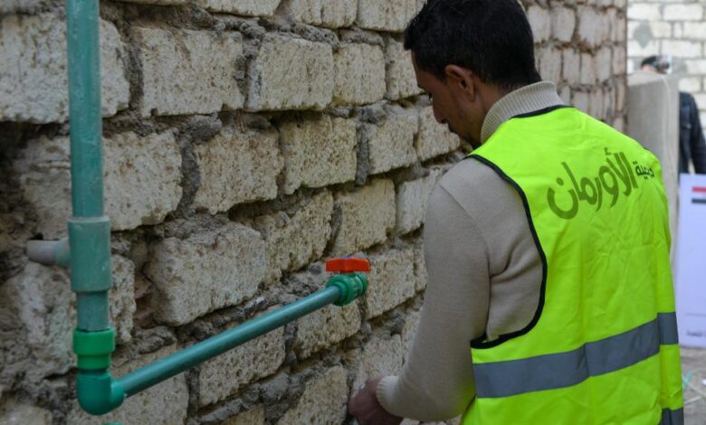 تركيب وصلات مياه مجانيه للأسر الأولى بالرعاية بمحافظة الغربية