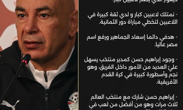 حسام حسن: طموحنا التتويج بأمم أفريقيا و نحترم كوت ديفوار.. ونقدر المغرب وجماهيره
