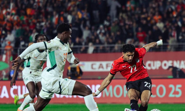 تقدم منتخب مصر أمام كوت ديفوار بهدفين لهدف على استاد أدرار، فى ربع نهائى أمم أفريقيا 2025 بالمغرب.