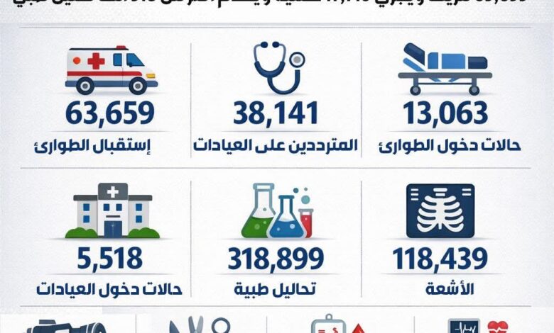 وعلى مستوى الخدمات التشخيصية والعلاجية، أوضح الدكتور المنشاوي أن المستشفى قدم خلال عام 2025 إجمالي (318,899) تحليلًا طبيًا، إلى جانب (118,439) فحصًا بالأشعة، كما أجرى الفريق الطبي (17,710) عملية جراحية متنوعة.