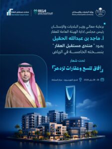 تشارك وزارة البلديات والإسكان في منتدى مستقبل العقار 2026 الذي تنطلق فعالياته في العاصمة الرياض من 26 إلى 28 يناير الجاري، الذي يُعد إحدى أبرز المنصات الوطنية والدولية المتخصصة في حوار مستقبل القطاع العقاري.