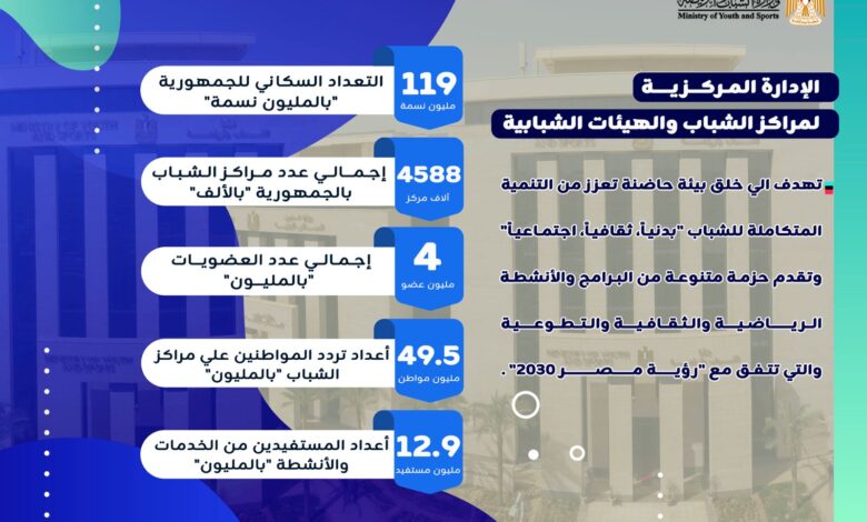 مراكز الشباب تخدم 12.9 مليون عضو وتستقبل 49.5 مليون زيارة سنويًا
