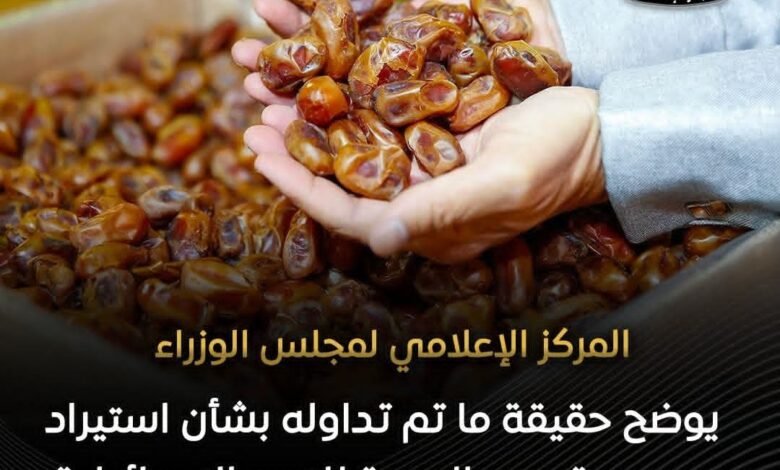 المركز الإعلامي لمجلس الوزراء يوضح حقيقة ما تم تداوله بشأن استيراد جمهورية مصر العربية للتمور الإسرائيلية
