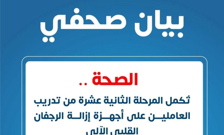 الصحة تُكمل المرحلة الثانية عشرة من تدريب العاملين على أجهزة إزالة الرجفان القلبي الآلي