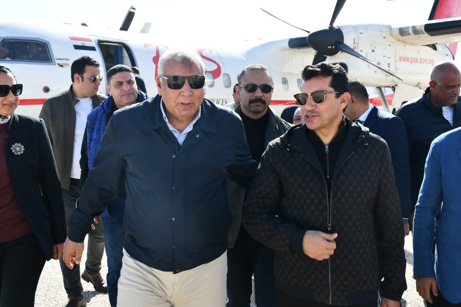 حيث كان في استقباله اللواء دكتور محمد الزملوط محافظ الوادي الجديد .واللواء خالد شعيب محافظ مطروح، وقيادات الوزارة والمحافظة ومديرية الشباب والرياضة.