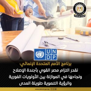 أشاد برنامج الأمم المتحدة الإنمائي بالتزام الحكومة المصرية القوي بتعزيز أجندة الإصلاح.