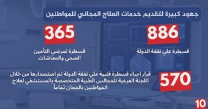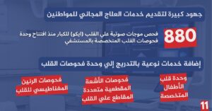 وشملت هذه الإنجازات إجراء 682 قسطرة تشخيصية و470 قسطرة علاجية مع تركيب دعامات دوائية، فضلًا عن إنقاذ حياة 64 مريضًا من خلال تدخلات عاجلة مجانية،