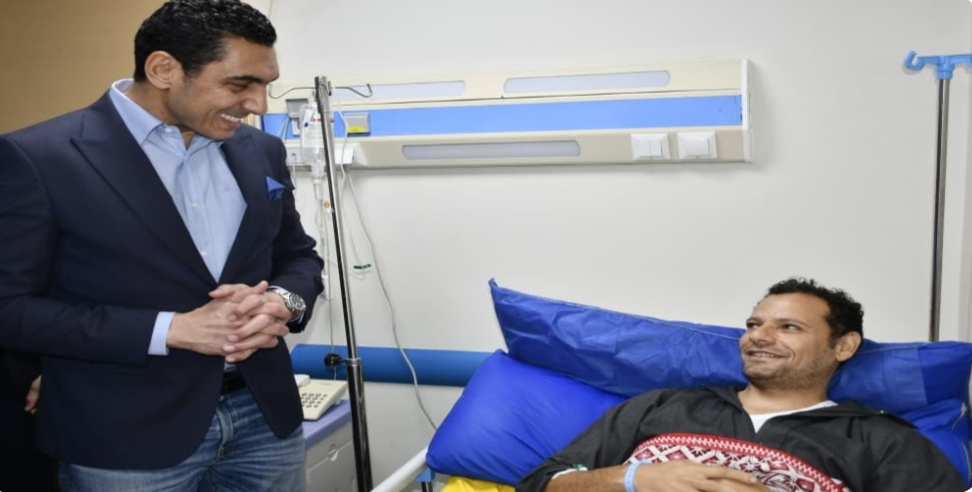 وزير الشباب والرياضة يزور احد عاملي النظافة بنادي النادي