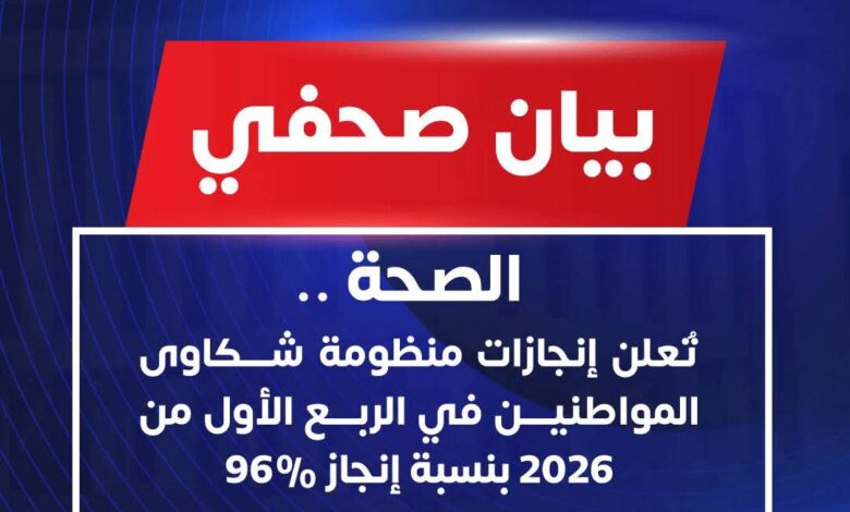 «الصحة» تُعلن إنجازات منظومة شكاوى المواطنين في الربع الأول من 2026 بنسبة إنجاز 96%