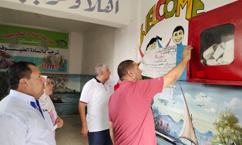 ووجه ا /كامل غطاس بمراجعة أعمال إزالة الإشغالات بجوار المدارس وتكثيف أعمال النظافة والتطهير داخل وبمحيط المدارس وصيانة دورات المياة والشبابيك والأثاث وتجميل الأسوار والحدائق والأشجار وتوفير كافة وسائل الأمن والسلامة للطلاب.
