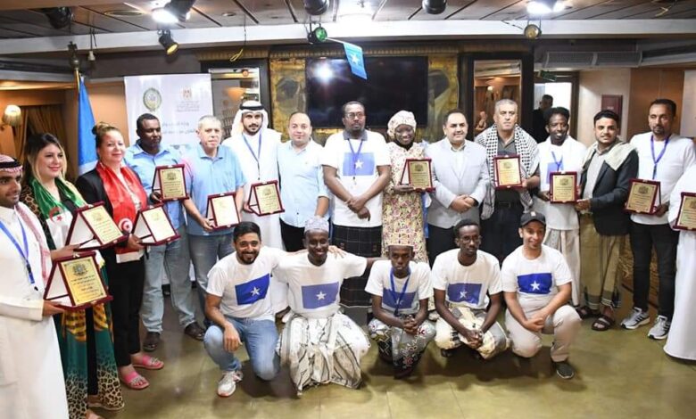 احتفل اليوم شباب الوفود العربية باليوم الوطنى للجمهورية الفيدرالية الصومال، ضمن فعاليات مشروع ” سفينة النيل للشباب العربى ” والذى تنظمه وزارة الشباب والرياضة المصرية ( الإدارة المركزية لتنمية الشباب ) من خلال الإدارة العامة للبرامج الثقافية والفنية ، الإدارة المركزية لشئون الوزير ، بالتعاون مع جامعة الدول العربية ، وممثلى الإتحاد العربى للتطوع ، بمشاركة 120 من شباب الوفود العربية من 15 دولة ( الأردن – الإمارات – تونس – البحرين – موريتانيا – الجزائر – جيبوتي – السعودية – الصومال – سلطنة عمان – فلسطين – لبنان – ليبيا – مصر – اليمن) .