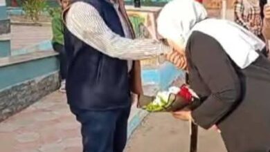 إحالة معلمه وزوجها مدير مدرسه للتحقيق بسبب فيديو اهدته فيه الورود وقبلت يده في مدرسه بالحسينية متابعة راندا عبد العزيز …