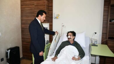 صبحي يطمئن على الحالة الصحية لوكيل وزارة الشباب بسيناء