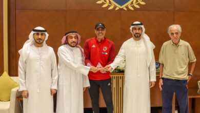 بيبو يوجه الشكر إلى مسئولي نادي الشرطة بعجمان.. ويهديهم درع وعلم الأهلي