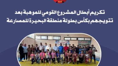 تكريم أبطال المشروع القومي للموهبة بعد تتويجهم بكأس بطولة منطقة البحيرة للمصارعة