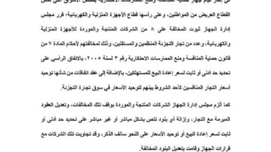 «حماية المنافسة» يُثبت مخالفة 8 شركات منتجة وموردة بسوق الأجهزة المنزلية والكهربائية