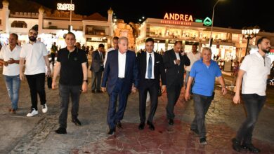 فوده يتفقد الحركة السياحية بالسوق التجاري القديم بمدينة شرم الشيخ