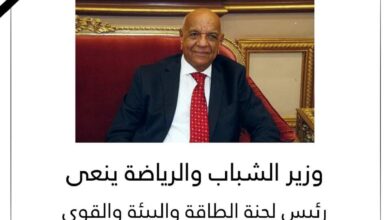 وزير الرياضة ينعى رئيس لجنة الطاقة والبيئة والقوى العاملة بمجلس الشيوخ