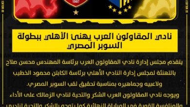 نادي المقاولون العرب يهنئ الأهلي ببطولة السوبر المصري