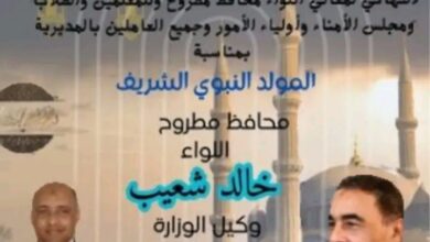 تعليم مطروح يهنئ قائد الأقليم والزملاء المعلمين بمناسبة ذكرى المولد النبوي الشريف